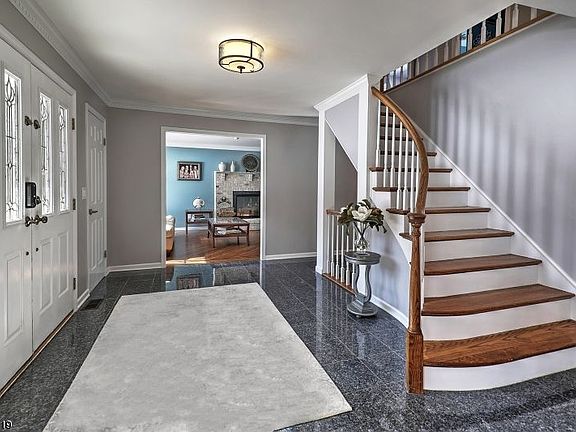 Sublime Brick Front Colonial at The Summit The Summit in Basking Ridge is an established neighborhood of traditional and contemporary homes set along quiet, winding streets. Amid this premier collection of luxury residences is an updated brick front Colonial that effortlessly supports multi-generational living. Arranged on three finished levels, the beautifully detailed 3,800-plus square-foot home offers six bedrooms and five full baths plus an amazing finished lower level with guest suite. A huge rear deck with shade gazebo overlooks 0.66-acre of open and wooded property. Extensive hardscapes and colorful landscaping surround this classic residence in the heart of the Somerset Hills. Approached by a paver drive to a paver stone turnaround and parking court, the home’s stunning architectural lines hint at the elegance inside. Double doors with leaded glass inserts reveal the granite-floored foyer featuring a staircase to the upper and lower levels as well as sightlines into some of the primary gathering spaces. Flanking the foyer are formal living and dining rooms, each fitted with contrast bordered hardwood floors and extensive millwork. The living room is anchored by a raised hearth brick fireplace and adjacent to a home office tucked behind a set of French doors, which can easily serve as a first floor bedroom with near-by full bath. Ideally sited for entertaining, the banquet-sized dining room offers a pass-through window from the chef’s kitchen. Highlights of the epicurean-inspired kitchen include a center island with breakfast bar seating, cherry cabinetry, granite countertops, granite flooring and a granite-topped dining peninsula overlooking the sun-splashed breakfast room and step-down family room. Spanning the rear of the home, the windowed conservatory/breakfast room also contains a spacious sitting area and French sliding glass doors to the deck. In the vaulted ceiling family room, distinctive design features such as skylights, hardwood floors, wall sconces and a raised hearth floor-to-ceiling stone fireplace lend character to this inviting space. Upstairs, a sophisticated master suite lined in crown moldings adjoins a skylit master bath featuring a platform soaking tub, clear glass door shower and granite-topped double sink vanity. Three more spacious bedrooms, all with hardwood floors, share the updated full bath. The up-to-the minute design of the finished walk-out lower level creates an entertainment-friendly area with generous living and gathering rooms. There is a stylish wet/bar kitchenette with microwave, refrigerator and icemaker, a coffered ceiling dining area, a media room accented in stacked stone with large-screen television, game room and music room. The private guest suite adjoining a full, updated bath is ideal for an extended family living arrangement. There is an additional light-filled carpeted bedroom also with double closets and dressing area. Basking Ridge is located in Bernards Township, an area known for its peaceful scenery and luxurious estate homes as well as proximity to major roadways and Midtown Direct train service to Manhattan. Excellent public and private schools, outstanding recreation, world class shopping and fine restaurants define this sought-after part of the state.