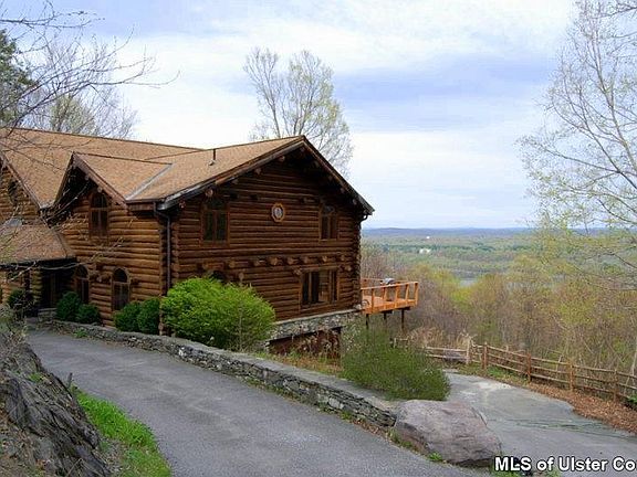 Perched high on a hill on a private dead end lane, overlooking the majestic Hudson River, is this unique hand crafted stunning log home. Enjoy stunning mtn views from your 50' deck or swim in the lovely, private in-ground pool and enjoy a respite in your own sauna! Located on over 5 ac, this lovely home is conveniently sited with easy access to New Paltz, Woodstock, Kingston and Poughkeepsie, and only 90 minutes to NYC!!!! SELLER IS HIGHLY MOTIVATED