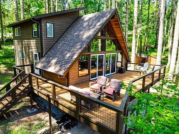 Don't miss your chance to own this Stunning Chalet! Price just reduced for a quick sale, appraised earlier this year for $600,000. Great location with a feeling of seclusion and yet is just minutes from town! The home offers a cozy living room with vaulted ceilings and gas fireplace with double sliders that lead to an expansive 500 sq ft deck perfect for enjoying your morning coffee while you take in the tranquil setting or entertaining a large crowd. The kitchen has stainless steel appliances, gas range with double ovens and lots of storage. The entire 3rd level is dedicated to the primary suite. There is a separate office area, vaulted ceilings and double closets. In the ensuite we have a vanity with double sinks,jetted soaking tub and shower. There is also a lower level that has it's own entrance, a full bathroom, bedroom, utility room and living area with gas fireplace and wet bar/kitchenette. Perfect for get togethers or potential for multigenerational living or adu? Buyers to do their own due diligence. Detached oversized garage and huge covered carport means you have room for all of your toys! Don't miss the opportunity to own this one of a kind home!