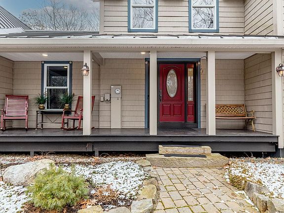 Escape to the countryside and enjoy this versatile and comfy modern Farmhouse nestled on 4.14 wooded acres! The pride of ownership radiates throughout this home with beautiful hardwoods and tile, natural sunlight and loads of amenities. A handsome stacked stone fireplace with a wood stove and built-ins gives the living room a warm ambiance. The heart of the home is the open kitchen and dining room! Leathered granite countertops, cherry cabinetry, large center island and organizational walk-in pantry. The Den has a vaulted ceiling and opens out to a large backyard sundeck with a built-in, granite-topped island and gas grill. A quiet office space with reliable, speedy fiber optic internet is located above the garage and consider this space as a fourth bedroom or weekend guest quarters! The primary suite with a private bath is a cozy retreat and features high ceilings, skylights, stacked stone accents and a walk-in closet. Additionally, there are two more bedrooms and a full bath with a laundry area. There is a family/game room in the daylight basement with a hearth and wood stove! Ample storage in the oversized 24x30-foot garage includes wall-mounted storage cabinets! For the hobbyists and gardeners there is a powered workshop, a second powered storage shed and a woodshed, too! Complete with a whole house generator so you won't skip a beat! Newer metal roof with 50 yr warranty and vinyl shakes and clapboard are both handsome and low maintenance! Easy commute to Portland, Lewiston/Auburn, Brunswick. Outdoor recreation abounds at nearby Pineland Center; the pristine Royal River, Bradbury Mountain, L.L. Bean, renowned restaurants and shopping! Award-winning schools! This charmer will steal your heart!