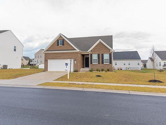 Welcome to 79 Triberg Dr! This stunning recently constructed two-level brick-front ranch rambler features 3 bedrooms and 2 full bathrooms on the main level, all with nine-foot ceilings and LVP flooring! The primary suite is spacious and features an ensuite bathroom with double vanities, a large walk in closet, water closet, and a stylish standing shower. The open floor plan includes a gourmet kitchen with granite countertops, sleek pendant lights, a double wall oven, and an electric cooktop. Adjacent to the kitchen, there is an additional living area, accompanied by a brick wall fireplace adding a perfect aesthetic. The main level also boasts a laundry room for added convenience. The 2-car garage and the concrete driveway provide ample parking. The lower level features a large recreation room, a full bath, and an additional unfinished living space for future expansion. The lower level also includes an unfinished room that is already insulated, offering potential for customization. Best of all, the lower level has its own walkout! The lower level features a large recreation room, a full bath, and an additional unfinished living space for future expansion. The lower level also includes an unfinished room that is already insulated, offering potential for customization. Best of all, the lower level has its own walkout! Norborne Giebe is a popular community for commuters, with easy access to Route 340 and proximity to Northern Virginia and Maryland. Amenities include a community pool, tot lot, a splash pad, and a basketball court! Schedule your showing today!