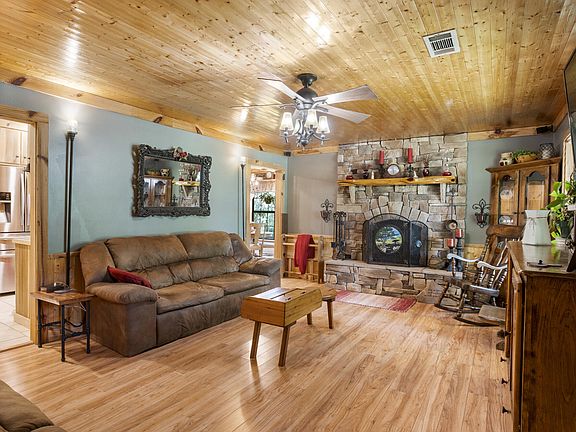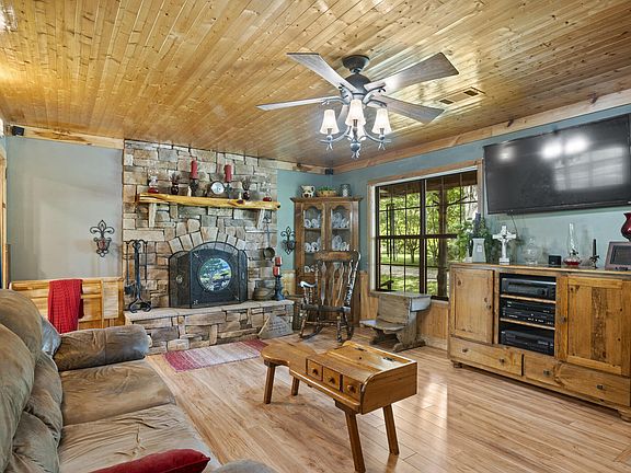 Step outside to a custom outdoor kitchen complete with a fireplace, smoker, pizza oven, and refrigerator—perfect for entertaining. The 3-car carport and attached shop provide ample storage and space for hobbies. With a new roof, water well, community water, and a tankless hot water heater, you'll enjoy peace of mind in this serene retreat. Don't miss the opportunity to own this beautiful cabin in the woods. Call today to schedule your showing!