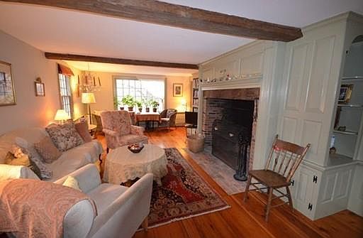 You will be delighted when you step into this Circa 1795 Home exuding warmth and charm. The Home has preserved its original architectural details while integrating all the modern amenities of today. Tastefully decorated with Historical shades, you will feel like you've stepped into the home of Martha Stewart. The Home features gleaming wide-pine flooring throughout, many large windows allowing the light to pour in, a walk-in fireplace, magnificent built-ins with intricate details, a vaulted large gathering room with wood ceiling, original beams and hardware, and updated newer baths with tile. The large eat-in kitchen overlooks the lovely deck and gracious back yard and is equipped with ample storage, period details and modern appliances. Upstairs are generous sized bedrooms that are light and bright. The exterior has been recently painted and newer furnace is a plus. This treasure has an easy flowing floor plan and is ready for the next generation.