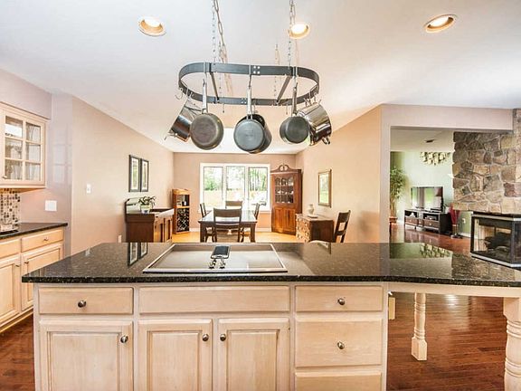 Beautiful, Unique Custom Stone Exterior Contemporary Home with open floor plan situated on a gorgeous 2.1 Acre lot. Enjoy the million dollar view from an expansive deck that overlooks scenic farmland. Large Kitchen features center island, granite counters with some glass cabinets, Double wall ovens. Impressive Great Rm with floor to ceiling windows, vaulted ceiling with skylight, hardwood floors & custom stone gas fireplace open on three sides so you can enjoy from different rooms. First Floor Master Bedroom Suite w/lavish ceramic bath, Whirlpool Tub & Walk-In Closet. Open office loft, Laundry & mudroom with side entry Features full In-Law Quarters in lower level w/complete kitchen & dining area, recently renovated full bath, bedroom & large living area with slider to large patio. New roof installed in 2016. This home has great curb appeal!