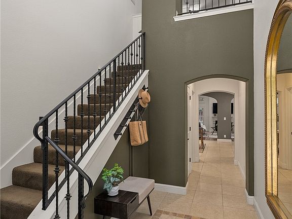 Welcome to 79 Veneto Circle, nestled in the prestigious Sorento community, where timeless elegance meets modern comfort. Step through a grand entry framed by graceful archways and soaring ceilings into a home rich with architectural beauty and refined finishes. Elegant window shutters, custom ceiling fans, and designer lighting enhance every space. This luxurious two-story residence offers 3 bedrooms, 2.5 baths, an open upstairs office, and two primary suites. The upstairs primary features a private balcony with designer wrought-iron railing, a large custom-tiled shower, dual sinks, and elegant lighting. A guest bedroom shares the balcony, while the third bedroom provides cozy comfort. The downstairs spacious primary suite offers a private retreat with high ceilings, an oversized walk-in closet, walk-in shower, soaking tub, and direct access to the tranquil patio with a built-in outdoor bar—perfect for morning coffee or evening relaxation. The living room exudes warmth with a gas fireplace and airy ambiance. The chef’s kitchen is a dream come true with rich cherry wood cabinetry, granite countertops, a large island, breakfast bar, walk-in pantry, and solar tube lighting. Additional highlights include a designer wrought-iron staircase, finished two-car garage, newer HVAC, dual mini-split systems, and a tankless water heater. The backyard oasis offers shaded trees, flower beds, and peaceful charm. Experience luxury and sophistication at 79 Veneto Circle—a true Sorento gem.