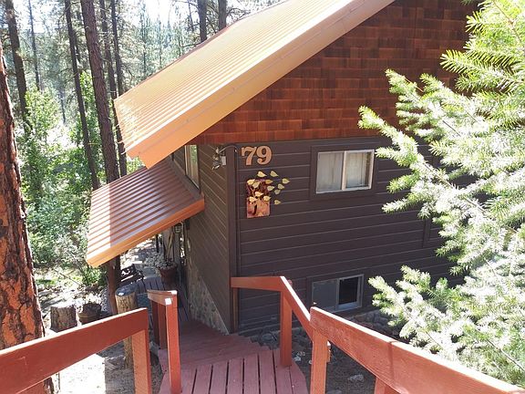 Picture perfect cabin in the woods. One owner home has been loving maintained with nice layout, lots of charm. There are three lots total with this sale. Third bedroom has no closet and seller offers a $5000 flooring allowance. No HOA fees but annual road maintenance is $155. Detached two car carport with storage along with small shop and additional storage. Nice deck, view and a great price.