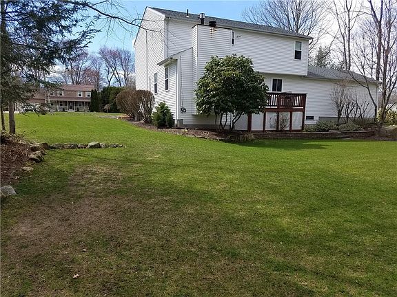 Western Cranston: Hillside Farms meticulously maintained 11 room, 3-4 bedroom, 2.5 bath Colonial. 1st Floor offers large kitchen with granite counters, dining area, slider to deck, formal dining room, living room, family room with fireplace, lavette and freshly painted. 2nd Floor has master bedroom with full bath, 3 more bedrooms and full bath. Full finished basement with private office and storage. New items include: new roof, windows, slider, hot water tank, mini split air and heat 1st floor, central air 2nd floor, new leach field conveniently located in front yard. Large beautiful back yard with shed. Sprinklers all around. This home is truly move in.