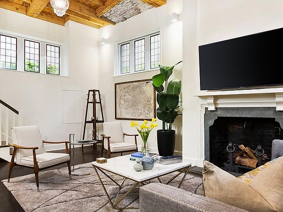 Extraordinary single family offers corner exposure with 26 windows, 3 bedrooms plus study, 2 full marble baths and 2 half bathrooms. The living room boasts 13 foot ceilings, leaded glass windows, a fireplace and terra cotta floors. The kitchen includes stainless steel back splash, glass front cabinets and Bosch, Subzero and Wolf appliances. This house also includes a formal dining room and library, both with a fireplace. There is a private roof deck, washer and dryer, central air conditioning and excellent storage.