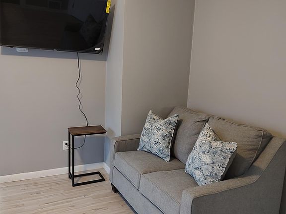 Modern & Clean, Newly Remodeled 2 Bedroom, 1 Bath furnished Apt. LVT flooring throughout and carpet in bedrooms. New kitchen with white Shaker Cabinets. Bathroom has beautiful 48" shower w glass doors. Clean and bright. A short walk to everything on Main Street. Laundry on site. All Utilities & Internet included. Private parking lot. No Pets & No Smoking! (Rent may increase if more than #2 ppl) All Utilities and Internet are included. No Smoking & No Pets! Private parking lot available. This is a month to month furnished rental for short-term (30 days+)