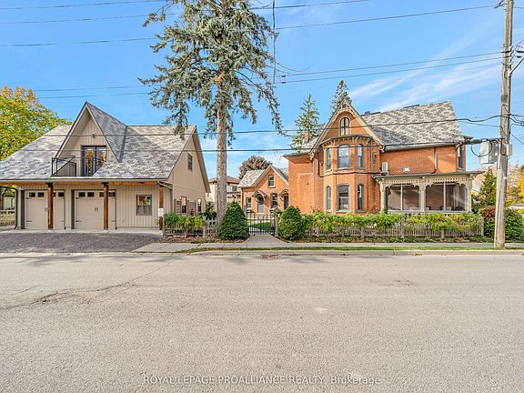 Welcome to 79 West Mary Street, an extraordinary Queen Anne Victorian Masterpiece in the heart of Picton. It was built in 1883 by Picton's first hardware store owner. This is a Victorian story of historical heritage and modern convenience. Notice the high multi pitched roof, turret, intricate brick work, multiple porches and ornate trim. Step inside the cranberry etched glass doors into the grand foyer and experience the classic centre-hall plan featuring 3 bedrooms and 3.5 bathrooms. This historical home boasts original woodwork and hardware, gleaming hardwood floors, a graceful cherry staircase, and an ornate tin ceiling - just a few of the exquisite details of this home's enduring beauty. A large 2 - storey coach house compliments the property offering flexible space for future possibilities. The house is situated on an irregular shaped lot giving privacy and is landscaped with perennials, raised garden beds and mature trees. Perfectly located in the heart of downtown Picton, you'll enjoy easy access to top-tier dining, boutique shopping, and vibrant local culture. The town is home to The Royal Hotel-recently awarded a Michelin Key-and is thriving with new energy, including the rebuild of the local hospital. A rare opportunity to own one of Picton's most admired historic homes.