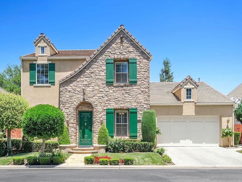Location, Location, Location! This Leo Wilson built beauty sits on an optimum N/S facing lot in desirable gated Kings Crossing near Buchanan High School. Situated in a prime location with no neighbors across the street, yet a relaxing sight & magnificent view of a full street of lush towering trees. Be greeted by an elegant entry with lots of natural light and towering ceilings with crown molding. Space for everyone with the formal living room, expansive Family Room, Formal Dining PLUS a huge game room/loft upstairs! Gorgeous hardwood flooring flowing seamlessly through most of the main level of the home. The gourmet kitchen is a chef's dream featuring granite countertops with blue sparkling accents & is open to the Family Room complete with a cozy fireplace. Exposed beams and painted murals throughout add a touch of elegance and old world charm. Retreat to the expansive Primary Suite on the main level with sitting alcove & large walk-in closet. Invite guests to stay & enjoy a downstairs bedroom/bath or a private bedroom/bath upstairs with huge loft inviting your imagination to make it your own! Step outside to paradise where you can relax under the gorgeous arbor overlooking the lap pool with tranquil fountains. All of this nestled in a quiet location in the desirable Clovis Unified School!