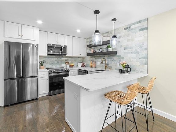 A MUST SEE for FIRST-TIME HOME BUYER OR INVESTOR! This gorgeous condo has NOW been renovated and is ready to welcome a new owner. Complete with new Samsung stainless steel appliances, quartz countertops, gleaming hardwood floors, new cabinets, fixtures and tiled backsplash are just some of the features in the kitchen. Spacious open-concept living & dining perfect for entertaining or keeping an eye on the new baby. Two generous-sized bedrooms with a primary that could fit a king bed. Can't find that in Boston for this price! Renovated bathroom with tiled shower, new vanity, lighting and fixtures to complete the remodel. PERFECT COMMUTER CONDO as the T-station is a 2 min walk and only a 30 MIN COMMUTE TO DOWNTOWN BOSTON. Whole Foods, restaurants/bars, tennis, outdoor pool and golf course within a mile. Newton is known for top-rated schools, which are all within walking distance. Start your journey in home ownership or add to your portfolio with the perfect rental investment.