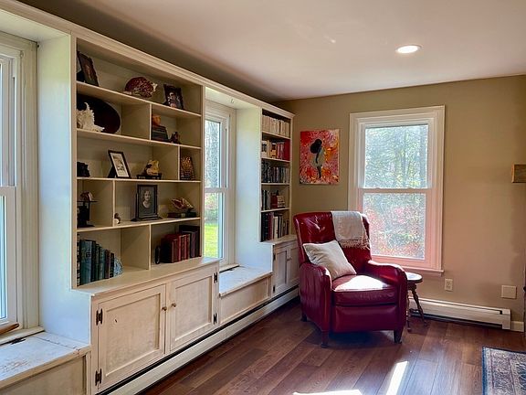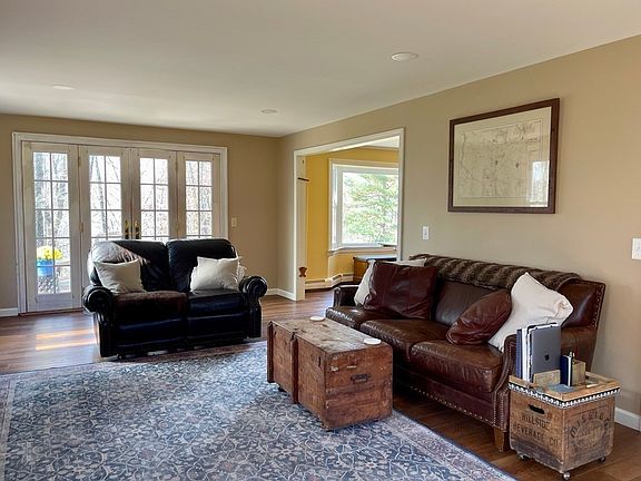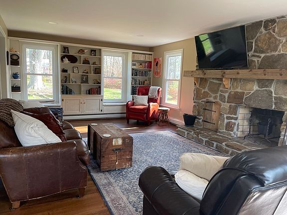 First time offered, this 2300+sq.ft. 4-bedroom colonial was custom built and has remained in the family for 45 years. Located near the town center, on 8 mostly wooded acres with stone wall borders. The kitchen / dining area has cherry cabinets, soapstone countertops and sink, a breakfast bar. and dining room area. First floor also includes a front -to-back living room with fieldstone fireplace, a private office, laundry, half bath, foyer and heated entry room leading to the 2 car garage. Large windows and French doors allow plenty of light with winter views of hills and sunsets. Heating system has both an oil boiler and a wood-burning boiler for baseboard hot water heat. The attached 2- car garage has a workshop area and a full second floor. The 2-story barn was originally built for horses but ideal for additional workspace and storage. Showings begin Wednesday, November 9th. All offers to be submitted by Monday @ 10:00AM.