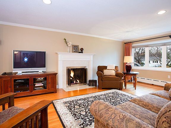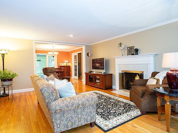 REMODELED ranch offers fantastic condition, flow, sight lines & location w/i steps to Center School & Town Green. Welcoming foyer shows oak hardwoods throughout & leads to living room highlighting crown molding, large bow window & gas fireplace w/marble surround. Dining room is heart of home w/double French doors to cozy family room, double French doors to all season sunroom, recessed panel header separating living room & wide open to remodeled kitchen. Kitchen features Kraftmaid maple cabinetry w/self-closing drawers, large peninsula for extra seating & granite tops. Master suite includes huge walk in closet & remodeled bath w/wood vanity w/solid surface top, tile flooring, linen closet & shower. 2 more bedrooms showcase crown molding & closets plus renovated full bath (17). Newer composite deck(16) wUV protection awning overlooking private, fenced backyard w/lower level paver patio, paver walkways, newer vinyl siding, replacement windows & newer roof offer peace of mind.