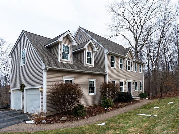 Best of both worlds - a private setting within a neighborhood! This well maintained, one owner center hall Colonial in popular Chestnut Hollow subdivision offers a scenic 2.47 acre lot at the end of a culdesac! The new composite deck and slate patio are positioned to enjoy a wooded setting overlooking Open Space with trails and the Jeremy River wetlands! A traditional interior will not disappoint, offering nine foot ceiling heights, first floor oak hardwoods and an updated granite & stainless kitchen! The second level features a Master suite with tray ceiling, full bath and walk-in closet, two additional bedrooms offer ample closet space plus a bright and airy Bonus room or fourth bedroom and second floor laundry! The walkout lower level family room will WOW you with tons of space for fun and relaxation - boasting a masonry fireplace and loads of glass windows and lighting! Many recent updates include a brand new architectural shingle roof and System 2000 heating system. Welcome home to this natural setting located only minutes to highway commuting, town center shopping and activities, schools, parks and everything that Hebron has to offer!