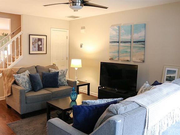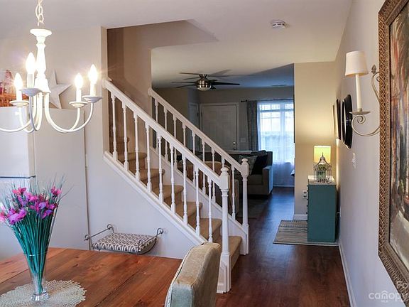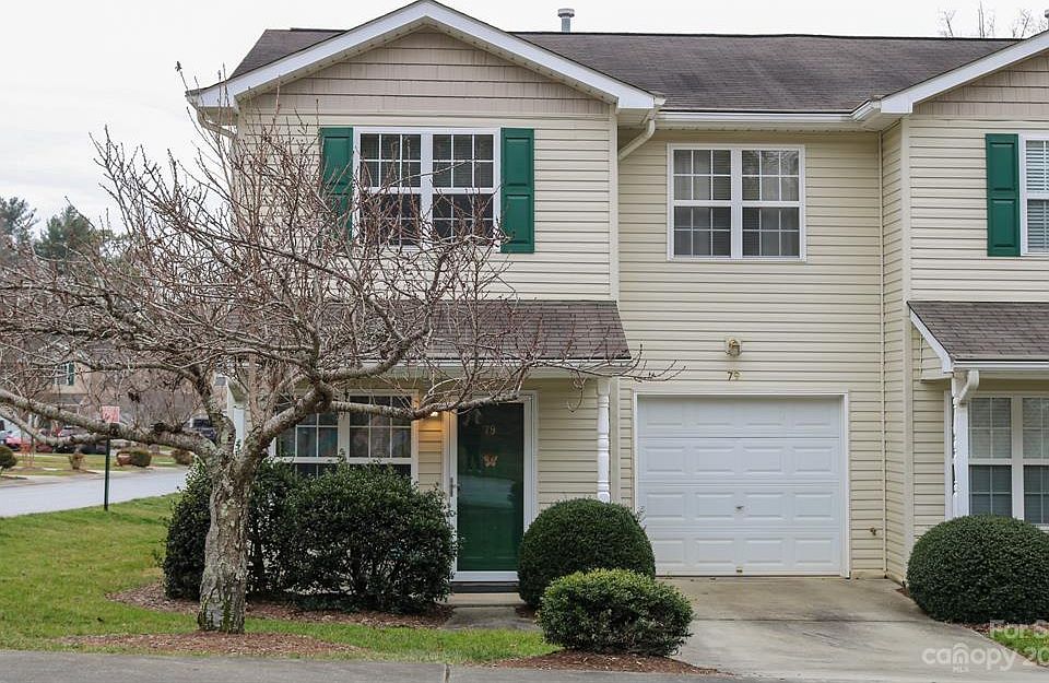 This home is move in ready, spotless and very convenient! It is centrally located between Asheville & Hendersonville and is only a short drive to Airport Road shopping and dining, the Asheville Airport and I-26. The main level has a lovely living room with a cozy gas fireplace, nicely updated kitchen and dining area leading to a rear patio surrounded by a nice privacy fence. Upstairs you will find the sizeable primary suite with two clothes closets, linen closet and primary bath. There is also two secondary bedrooms and another full bath on the upper level. This home has been carefully maintained with the following new additions and updates in the last couple of years, per the owner: range, refrigerator, washer, garbage disposal, backsplash, under counter lighting, storm door, backyard privacy fence and freshly painted kitchen cabinets. This is a great end unit with only one shared wall. Stafford Crossing is a lovely community and very walkable. Some furnishings are negotiable.