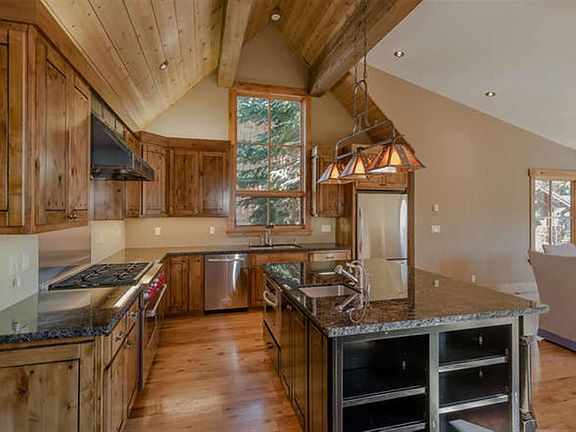 Spectacular mountain home. Perfect for entertaining family and friends. High vaulted ceilings with exposed beams, rock fireplace, open kitchen, living and dining area. Nice family room downstairs with rock fireplace. Beautiful custom details throughout. Stairway railing is forged metal with skis and poles accents throughout. This gorgeous 5 bedroom, 4 bath room home has an additional bunk room. Master bathroom has beautiful cooper tub and steam shower. Resort at Squaw Creek membership is optional.
