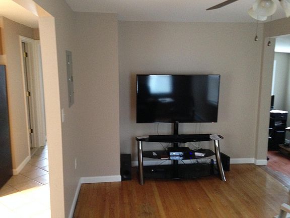 First Floor 4 1/2 room, 2 bedroom, 1 bath, the half room is an office space with wall to wall closet for storage. Remodeled top to bottom 7 years ago, just repainted entire apartment, currently in excellent condition. Hardwood flooring, tile in kitchen and bathroom. Oak cabinets, stainless steel appliances including refridge, microwave, and gas stove. High efficiency gas boiler with gas hot water heater. Washer and dryer hook up in shared basement. Ceiling fans in both bedrooms and livingroom. Quiet neighborhood, off street parking with nice yard