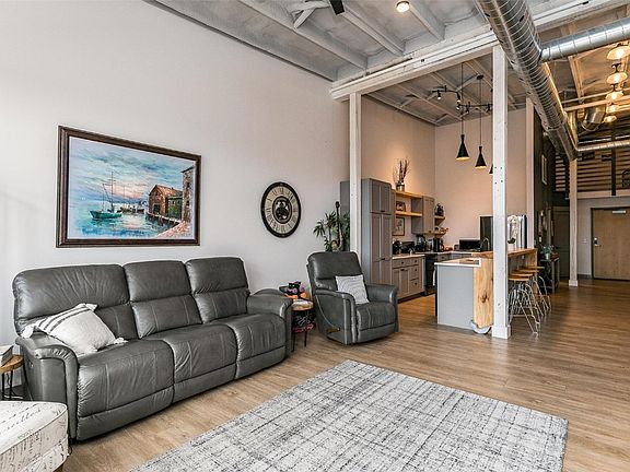Last luxury condo located in the heart of historic Uptown Marion. Walk out your front door into all the boutiques, eateries, bars and businesses. This one of a kind has an elevator with an indoor heated parking garage and security. When you walk in the unit it immediately has wow factor with 24' ceilings and open concept that envelopes a gourmet kitchen. The master has an on-suite closet and large bath. The upstairs loft has a large closet that can covert nicely from a second/guest room into an office. 2 full bathrooms a separate laundry. Association dues are $170/mo.