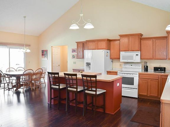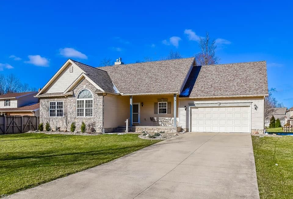 Feel at home as soon as you step inside this lovely 3 bedroom, 2 full bath ranch! Open floor plan with vaulted ceilings! You'll love the beautiful new flooring throughout the great room, kitchen, dining room, leading down the hallway to the master bedroom. Find your culinary inspiration in the beautiful kitchen with fantastic cabinets and counter space! Enjoy the large center island with a breakfast bar and built-in shelving. Curl up next to the gas fireplace in the great room and stay warm all winter long. The spacious master suite has a pocket door to the private master bath with garden tub and a walk-in closet. Bedroom 2 has 9-foot ceilings and bedroom 3 has vaulted ceilings, both with large closets. Fresh paint throughout and lots of natural light! 1st floor laundry room with storage cabinets and utility sink, a real bonus! Wonderful storage in the full 12 course basement plumbed for a bath. There's a 2-car attached garage with storage space and a new garage door opener system with a transferable, lifetime warranty from Precision Door. Spend all summer loving your gorgeous yard with all new landscaping including 15 tons of river stone. The yard features a 2-tier composite, no maintenance deck perfect for entertaining! Extras include a new hot water tank and hard wired smoke alarms. Call today to schedule a private showing!