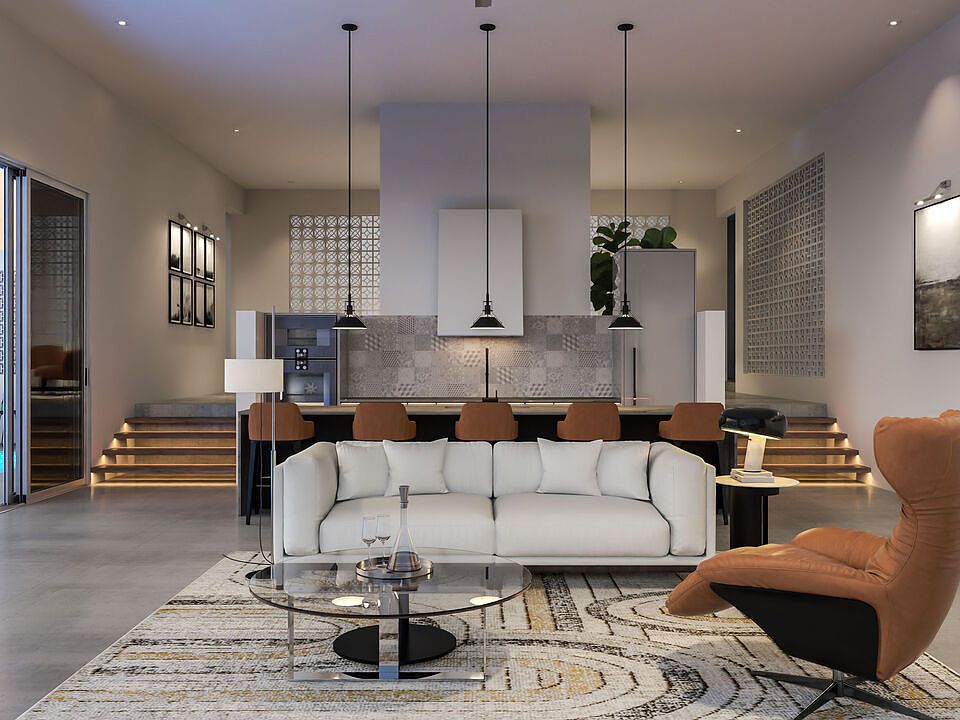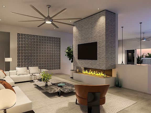 New construction- Estimated delivery 2023. Timeless sophisticated designer property. Custom built in Palm Springs home.Walls of glass both in the kitchen and living area allow the interior and exterior to blend seamlessly. Master suite feature fireplace and soaking tub. Exterior included lap pool, sunken living room and fire pit. Classic design with modern material to signify the coming together of old and new. Images shown are not live images they are only renderings to show the intended design of the completed project.