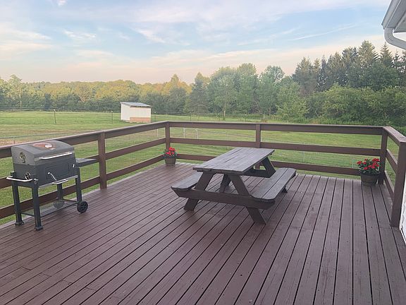-Amazing property on over ten acres! Great setup for horses. 2 Barns: 32x42 barn with water, electric, heated tack room, and 5 stalls. Metal pole barn 1,800sqr ft with electric. The great split entry home has been recently remodeled.