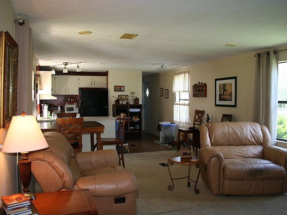 Quiet country property with established landscaping and out buildings. Approx 5 acres, bring your horses. Newer metal roof. Privacy fenced back yard, covered 9 x16 front porch, open back porch, paved patio area, fire pit, large carport and shed. Comfortable single wide with open floor plan. Bright and neutral colors. Build your dream home here! Window treatments and appliances stay. May consider owner financing with 10% down.
