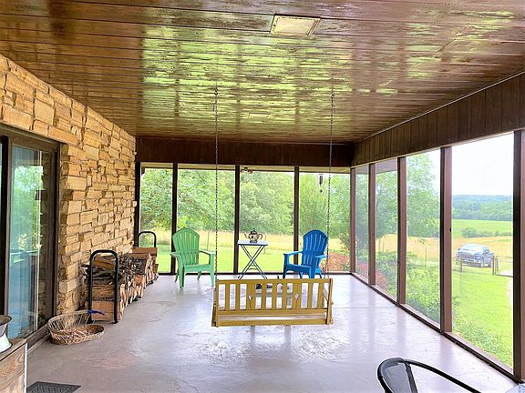 One of the Ozarks best kept secrets! Native sandstone house with huge matching fireplace. Elevated view of the Warm Fork River Valley. The large 27'1'' x 14'2'' porch is totally screened in and faces west providing a spectacular panoramic view of the valley below. The studio offers a 20'x18' bedroom, a 5'x7' bath, and a 16'x17' living room. Nice mixture of wooded ground and pasture. Fenced for livestock and privacy. Located just 4 miles from shopping and medical care in Thayer. There is a newer 2 story studio, with bathroom, that makes an excellent guest cottage or workrooms for arts and crafts. The property abounds with Ozark widlife.