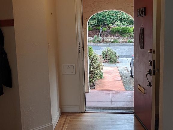 Spacious Berkeley Hills house with a fantastic location and outstanding views of San Francisco, Golden Gate Bridge and the Bay from the living room, dining room and kitchen! Two large bedrooms and one bath with shower over tub. Living room has a beautiful wood burning fireplace and glass wall views of the bay. Large private back yard with an elegant mature garden. Deck off the kitchen for viewing sunrises and sunsets as well as special barbecue nights. Super close to the 5-star rated, Cragmont Elementary. Just up the hill from the best of Berkeley's restaurants. Tilden Park and one of the best universities in the country are just minutes away. Don't let this one get away!