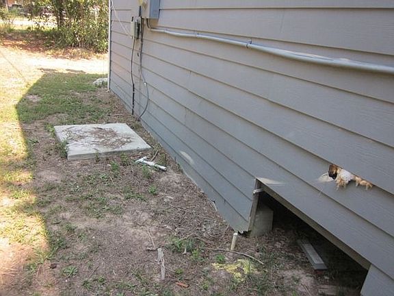 Exterior Features:Home has fair curb appeal. Secluded, wooded lot. Composite siding. Composite shingle roof. Attached carport.Interior Features:Home is in fair condition. Some flooring will need repair. Kitchen: sink, cabinets present. Bathroom: sink, toilet, tub present.
