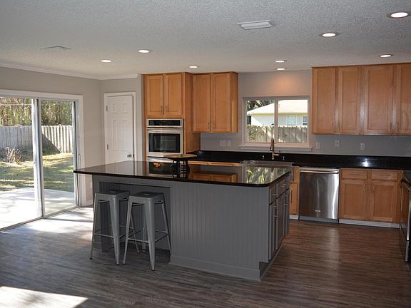 Fantastic RENOVATED home on almost 1/2 ACRE in excellent Fleming Island location! Gorgeous updates throughout and ready to move-in now! Walk into beautiful new flooring throughout...durable vinyl plank, wood tile in MBA and Laundry, and fresh carpet in bedrooms. New A/C, new light fixtures, door hardware, and paint inside & out! You'll love the huge center island sitting in the center of the gourmet kitchen with granite counter tops, double ovens, stainless steel appliances, deep commercial grade SS sink, and large 42 inch cabinetry! Bring on the guests - it's time to entertain! Four bedrooms, two bathrooms, & plenty of open-concept options with multiple flex spaces. Large driveway, plenty of parking space, NO HOA or CDD fees, & a HUGE fenced back yard with plenty of space for a pool!!