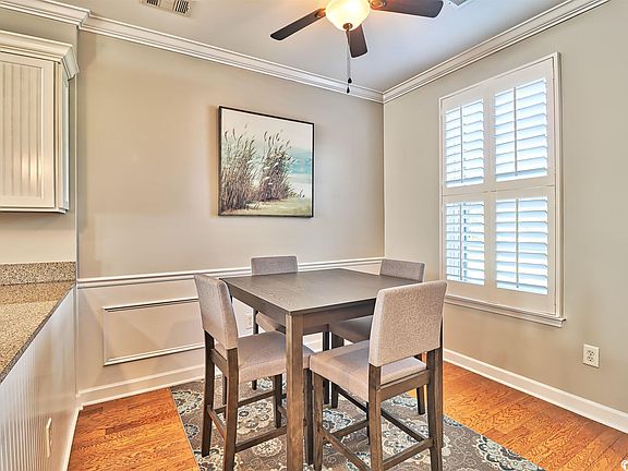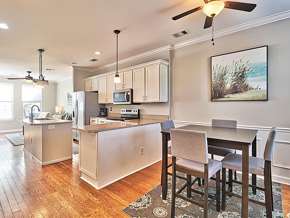 Welcome to The Market Common, where you are not just buying a townhome, you are buying a lifestyle! This property is in a prime location, so close to shopping, restaurants, movie theater, bowling, parks, a pond to kayak, playgrounds and much more. Drive around town in your golf cart that will fit easily in the oversized 1-car garage. This is a true townhouse though the HOA does include the exterior insurance. There is a private courtyard with composite decking and fencing, a peaceful place with plenty of room for a table and chairs, a grill and maybe a raised garden! The first floor includes a dining area that opens to the kitchen with stainless steel appliances and granite countertops. This leads to the spacious living area with a door leading to the courtyard and garage. There is also a convenient half bath on the first floor level. The entire downstairs has wood floors with newer carpet on stairs and entire second floor. Upstairs are 2 large bedrooms, one facing the front and one facing your private courtyard. The master bedroom has a private bath with a shower tub combo and granite countertop double sinks, the second bedroom has a private bathroom with shower. All furniture is included with the exception of patio furniture and a few personal items, all ready for you to move in and start exploring! The townhome has been freshly painted, with a newer washer/dryer combo that is included with the sale. There is an HTC security system with panel, window and door sensors that seller has combined with internet. With almost 1200 heated square feet and the private courtyard and garage, you will have plenty of space to entertain and live the lifestyle of The Market Common! Square footage is approximate and not guaranteed. Buyer is responsible for verification.