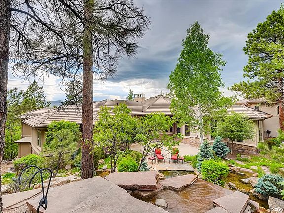 HUGE PRICE REDUCTION!!! STEAL OF A DEAL!!! At less than $200/SF, this is a TRUE VALUE! Priced with your remodel in mind!!! A property like no other, truly a "Village Estate"; this sophisticated custom-built ranch style home features spectacular Colorado mountain views and sunsets. Its storybook setting with cascading waterfalls and stone walkways sits amongst mature-growth pines. The home was perfectly designed on 1.36 acres to integrate the Colorado landscape with unrivaled outdoor living. Multi-directional waterfalls, grill cabana, extensive stone sitting areas and old-growth pines create a gorgeous oasis for entertaining. A grand entry invites you in and continues to impress with a fabulous living room, dining room that welcomes entertaining, and a gourmet kitchen that is sure to please. The master suite is spacious and private. The lower, walk-out level features 3 additional en-suite bedrooms, a multilevel media room, billiard room, exercise room, and family room all serviced by a lavish bar and multi-patio access points. The Casita/Guest House with private entrance is a perfect at-home office or retreat and features a detailed paneled expanse, bathroom, kitchenette, and balcony views for miles. The fifth bay of the garage is a segregated "show room" that is heated and perfect for your hobby car, bike or avocation. A special location surrounded by the Village's best homes awaits only your imagination. See this beauty today. PRICED TO SELL!!! Don't miss your chance of a lifetime!