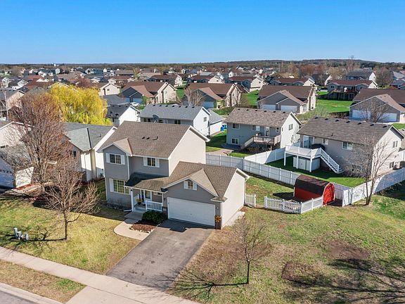 Check out this lively 2-story stunner, wrapped in sharp vinyl siding with brick flair! Welcome guests on the inviting covered front porch with seamless gutters. Park in the insulated 2-car garage, complete with handy overhead storage. Unwind on the grand 12’x19’ wood deck off the kitchen/dining area, gazing at a fenced backyard with a standout 8’x10’ powered shed and a unique 2nd water meter for thriving gardens. The gorgeous kitchen boasts stainless steel appliances, gas range, breakfast bar, garbage disposal, and a vast pantry. Enjoy a main floor half bath, elegant master bath with tiled floors, and a lower level ready for a future bath. Stay cozy with a high-efficiency furnace (with a new inducer motor as of 2024), humidifier, central A/C, air exchange, and off-peak water heater (new last year). On a spacious corner lot perfect for gardening, this home shines! Book your tour today!
