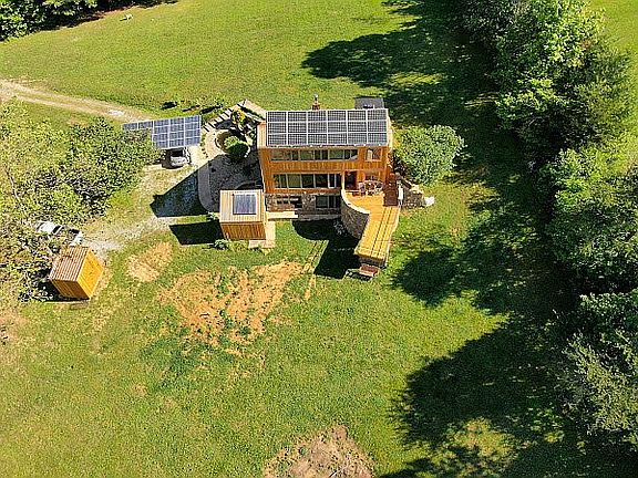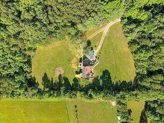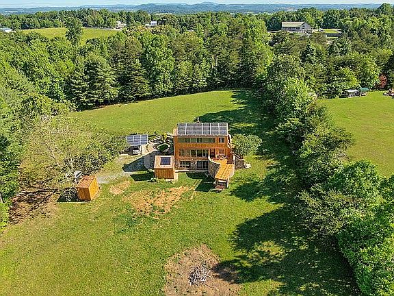 Here comes the sun! Tucked away on 18.76 acres with panoramic mountain views this unique net zero solar home is the private oasis you’ve been searching for. Enter the property through a gated driveway and enjoy the peaceful ride through the woods to an exclusive domicile posting contemporary charm and functional style. Step into an airy living space with surrounding windows that flood natural light throughout. On the upper level you will find electric shades along with two spacious bedrooms and a full bath. The kitchen features new appliances and plenty of storage. Downstairs the large bonus room is ideal for entertaining and a third bedroom and full bath provide additional space. Relax on the side patio which is situated next to the recently updated waterfall pond or romp around in the expansive backyard. Create new biking or atv trails in the woods or plant gardens the possibilities are endless. Two storage buildings ensure plenty of space to meet your needs. Recent updates include new cypress siding, Virginia stone veneer and stucco, new decks, new septic system, new multi split heat pump, metal roof and hot water heater. Get the seclusion that you want but also the convenience of town with only a 10 minute drive to access shopping restaurants and more. And if you enjoy being outdoors, you’re minutes away from hiking trails and river access for kayaking and boating. With so much to offer what are you waiting for!