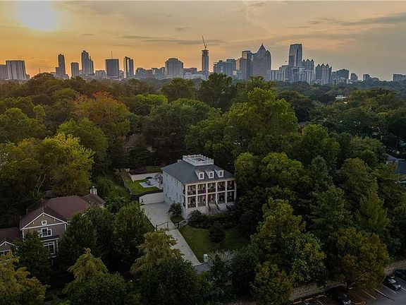 Now offered at a new price — rare opportunity in Midtown’s Garden District where modern antebellum elegance and resort-style amenities come together in a setting that offers both privacy and prime location. Tucked quietly away from the street yet instantly recognizable from the BeltLine, this residence commands attention with its double-height verandas, elevated site, and a one-of-a-kind widow’s walk offering sweeping 360° skyline views and sunsets you won’t forget. The home unfolds across four levels, delivering eight bedrooms and seven and a half baths. The classic facade is lined with eight sets of French doors, flooding the main floor with light and opening directly onto the verandas. Ten-foot ceilings crown the main level, which also boasts its own laundry for added convenience. Step outside to a heated saltwater pool, perfectly positioned for privacy and effortless entertaining, with two additional sets of French doors leading to the backyard oasis. The vaulted owner’s retreat is a world unto itself with serene pool views, direct access to the veranda, a separate sitting room with a mini wet bar, and a private connection to an adjoining bedroom ideal for a nursery or home office. On the third floor, another laundry room complete with a sink and generous folding space makes everyday living seamless. The fourth level offers two spacious bedrooms, abundant attic storage, a Jack and Jill bath, and access to the rooftop deck where the city unfolds in every direction. Downstairs, host guests in a private suite, stay active in the professional gym, unwind in the steam shower, and rest easy with a concrete-encased panic room. The three-car garage is EV ready for modern convenience. This Midtown estate combines extraordinary scale, unforgettable skyline views, and unmatched walkability just moments from Piedmont Park, Trader Joes, Whole Foods, Ponce City Market, the BeltLine, and more.