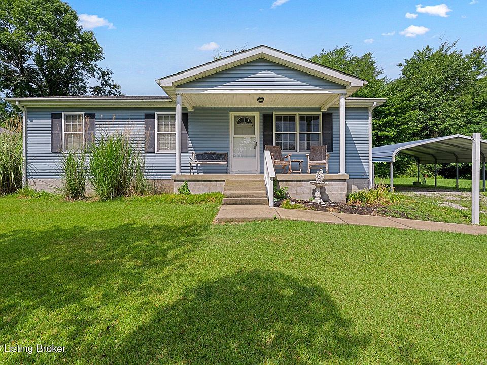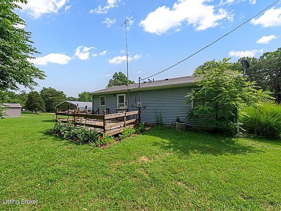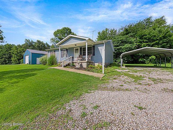Move-in ready ranch with pole barn located on 3 lots in Sunset Harbor at Nolin Lake! This neighborhood allows short term rentals! Community boat ramp in neighborhood, only a few minutes away. Three Bedroom ranch with central air features eat-in kitchen, large hall bathroom, covered front porch and deck off the back. There is a caport next to the house and a circular driveway. The 5 car garage is tall to accommodate all your lake toys. Home sits on three lots, almost a full acre.
