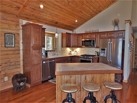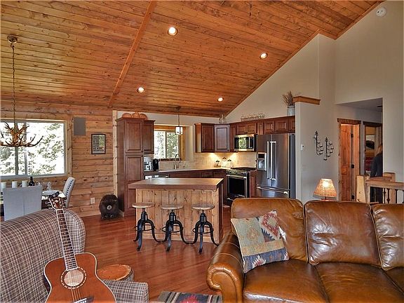 Fully furnished log sided cabin with MASSIVE WALL OF WINDOW VIEWS sits on 2.99 acres with year round access only 35 mins to Breck! SS Kitchen Aid appliances, in-floor radiant heat, hardwood floors, T&G vaulted ceiling plus floor to ceiling rocked wood fireplace with log mantel & hearth. Master suite features a HUGE walk-in closet, zero edge shower door & RiverRock pan & private deck entrance. HUGE wraparound deck, log accents, metal roof & an OS 2 car garage. Level driveway and lots of parking.