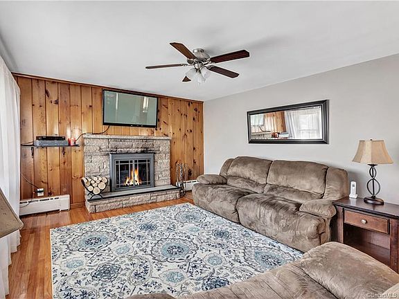 Don't miss out on this deceivingly large Ranch style home conveniently located to everything. Walking distance to elementary, middle and high school as well as Metro North Train Station and minutes to Merritt Parway and I95. Home consists of generous sized rooms, a large sun filled living room with wood fireplace which opens up to formal dining room makes for plenty of room to entertain along with large eat in kitchen. Main level also has 3 bedrooms; 2 having walk in closets and full bath. Large lower level is finished and heated with 2nd full bath for additional living space or in law potential. Great back yard with firepit area and patio perfect for entertaining. Will not last long; make an appointment to see today.