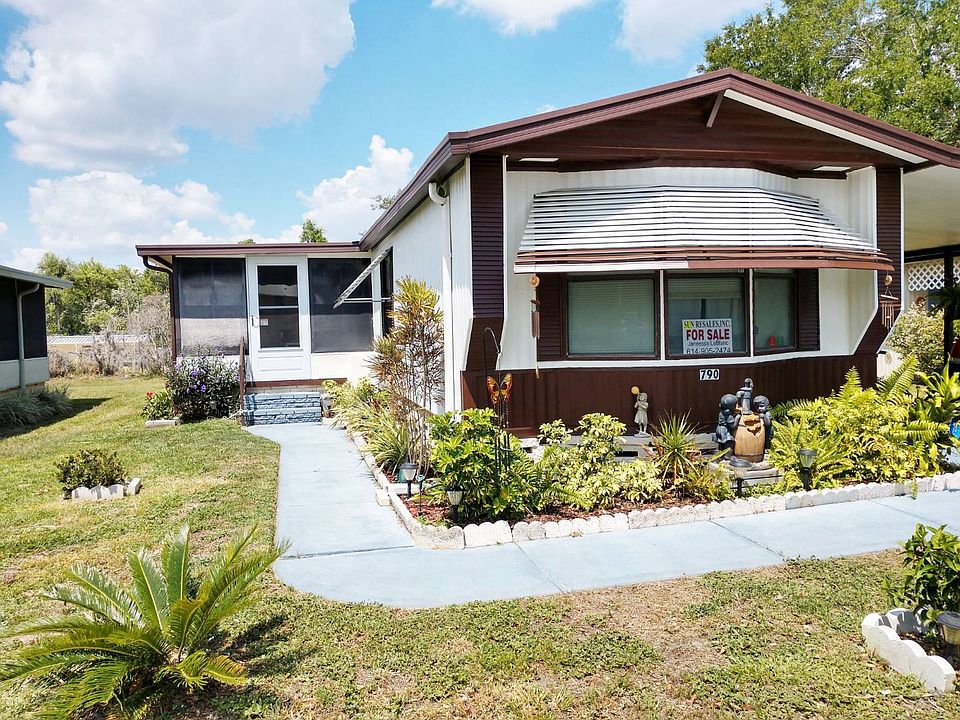 This 1987 Merit is situated in the popular Hidden Golf Club which is part of the combined 55+ CRF gated communities. Hidden Golf and Swiss Golf & Tennis is where you can enjoy an active community on the beautiful 1,000-acre Lake Henry with fishing pier and boat dock. This home comes furnished and has two bedrooms 1 1/2 bath with an open living, dining, kitchen area. Upgrades to the home include a brand-new roof over system in May 0f 2018. These systems provide better insulation to the home, lowers utility costs, lifetime guarantee. You will find it much quieter inside and generally don't even hear the rain beating down. The home is furnished. All appliances in good working condition. The Florida room has all new sliding vinyl windows ($2850.00 March 2018). You will enjoy the convenience of inside laundry just off the kitchen. One can easily make this place thier own. It is priced right to sell quickly. Houses are truly selling quickly, don't wait. The home has nice curb appeal with nice landscaping. It has a private backyard as there are no homes behind you. Give me a call and let me answer all your questions. Hidden Golf and Swiss Golf & Tennis are very active communities. There are 2 clubhouses, 2 pools, an onsite restaurant, exercise room, card room, billiard room, library, pro shop for the 18 hole executive golf course, shuffleboard, pickle ball, bocce ball and the list goes on. There is a strong entertainment committee which provides local monthly shows, dances, dinners, cards, white elephant sales, golf cart parades and bingo. You can be as active as you like or just chill out by the pool overlooking a beautiful lake. Winter Haven, FL, is centrally located between both the Gulf and the East Coast beaches. The Orlando Airport is only 45 minutes away and so are many sports events, such as the Lakeland training camp. Disney World and Universal Studios are close enough to enjoy any time you feel like going. There is a never ending array of outlet malls for shopping, dining and relaxing! So, whatever you like to do for entertainment, Central Florida is the place to live. Property address is 790 Nine Iron Ct., Winter Haven, FL 33881. Current lot rent is $428.00 which will be assumed for 2018. Contact Janeesse LeBlanc with Sun Resales