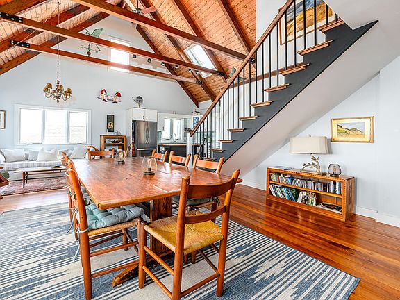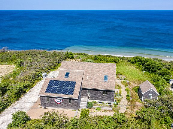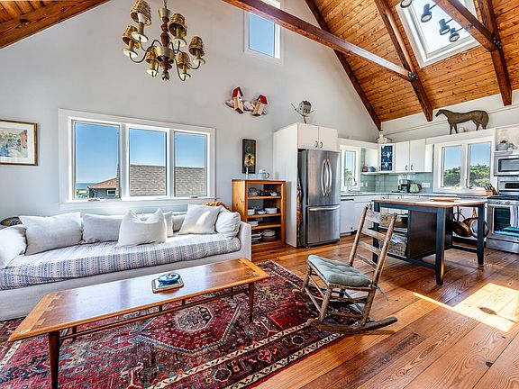 This stunning property, overlooking the ocean, underwent a complete renovation in 2015, including the relocation of the house towards the street, the addition of a full basement, and an upgrade to the Title V septic system. This home is a beautiful display of craftsmanship, with no detail overlooked. The main floor offers an open-concept living/kitchen/dining room, with vaulted ceilings, hardwood floors, and windows on nearly every wall to capture the stunning panoramic water views. There is a bedroom on the 1st floor with sliders out to the deck and a spacious walk-in closet containing a washer and dryer. Upstairs, enjoy the views from the 2nd bedroom, or step out onto the private deck. Every element of this house was designed to embrace ocean-front living. Outside there is a sizable deck perfect for hosting guests, a shower, spacious storage shed, and a fire pit for cozy gatherings. A partially finished basement offers addt'l living/entertainment space and currently serves as a 3rd bedroom. The beach is only steps away from the property. Whether you're seeking a move-in ready dream home, an investment property, or a little of both, this property is the perfect Wellfleet retreat!