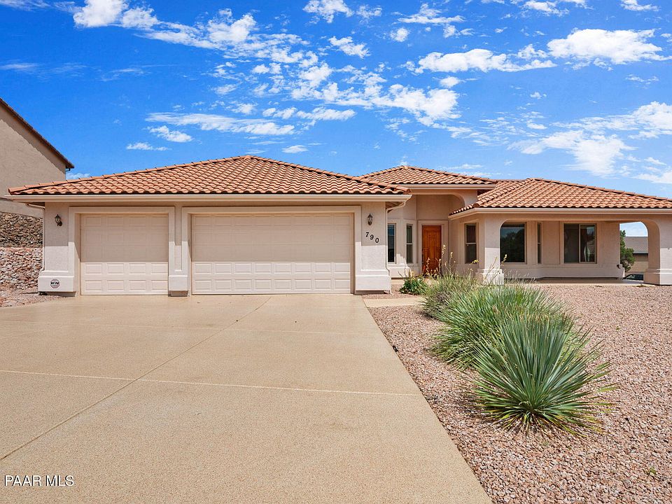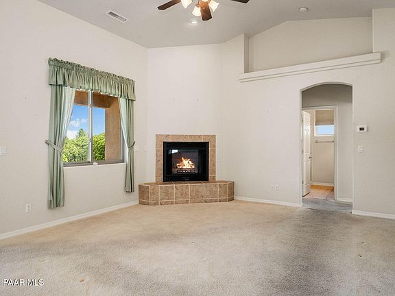 Welcome to this inviting 3-bedroom, 2-bath home in the highly desirable Pinon Oaks community. Nestled on a spacious corner lot with no HOA, this residence offers both comfort and flexibility. Inside, you'll find an open and light-filled floor plan featuring a warm great room with a cozy fireplace, a kitchen with plenty of counter space, and a dining area perfect for entertaining. The split floor plan provides privacy, with a generous primary suite boasting a walk-in closet and en-suite bath. Enjoy Arizona's beautiful four seasons from your covered patio and low-maintenance landscaped backyard--ideal for outdoor gatherings or quiet relaxation. The oversized 3-car garage provides ample room for vehicles, storage, or hobbies. Conveniently located near shopping, dining, medical facilities, and historic downtown Prescott, this home combines modern convenience with a peaceful neighborhood setting.