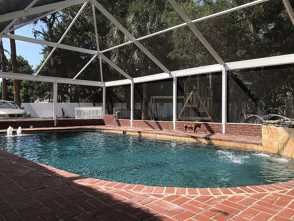 Updated Colonial home that is also for sale under MLS 866876. Not ready to buy, you can rent this home. Could be a perfect opportunity to try working from home. Plenty of room with 4000 sq ft under air 5 bedrooms upstairs and a dedicated office at the back of the house. Very large screened-in deck with pool and children's play area at the back. If you have a boat that can be launched at the the community dock, with room to park it at the back of property.In addition to the oversized attached double garage there is a large workshop that wraps around the side and back of garage and is under air.Lawn care and Pool Service is includedEasy commute to Space Center, Airports and beaches. Less than 10 minutes drive to grocery store.