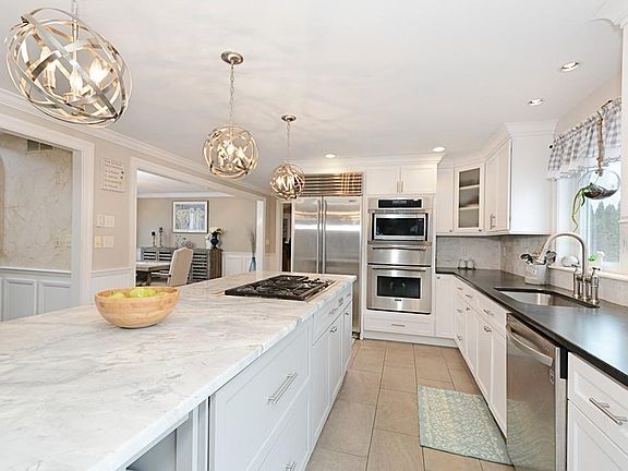 • Kit Dscrp: Countertops - Stone/Granite/Solid, Cabinets - Upgraded, Flooring - Stone/Ceramic Tile, Kitchen Island, Stainless Steel Appliances, Open Floor Plan, Recessed Lighting, Remodeled, Exterior Access, Lighting - Pendant, Crown Molding
