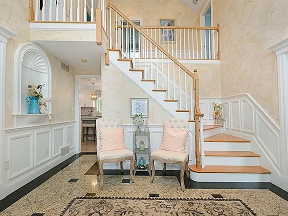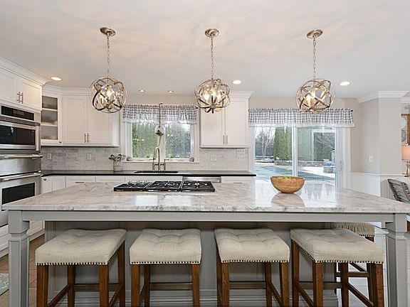 Completely remodeled, 3-4 bedroom, 3.5 bath Colonial with 2 car garage. Open floor plan, featuring a stunning custom gourmet kitchen with 9 ft long quartzite center island with Wolf gas cook-top, Sub-Zero fridge, Thermador oven, and wine fridge, Gorgeous cabinetry, built-in pantry, quartzite counter tops, marble back splash and pendant lighting .Hardwood floors and crown molding in formal dining room, living room and family room. Huge 30x25 great room, with cathedral ceiling, hardwood flooring and gas fireplace. Fully integrated surround sound. Two story foyer, central air, central vac and 2nd floor laundry. Master suite with walk-in closest and rejuvenating steam shower. Garage access to 1,000 sq ft lower level, w/ home movie theater, guest bedroom and 3/4 bath. Backyard oasis features a 36X18 in-ground heated pool, hotub/spa, stone fireplace, and coy pond, all framed by 143 private arbor vitae. An irrigation system and beautiful stonework complete the incredible manicured grounds!