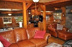 1.55 acres of mostly usable land with pond & gazebo. A lot of decking to entertain your mountain guest. Would make a nice second home or primary residence. Kitchen has stainless appliances, granite countertop. Massive stone fireplace. Attached carport. Two detached storage buildings of little value. All information contained herein deemed reliable but not guaranteed should be verified by the buyer/buyer's agent.