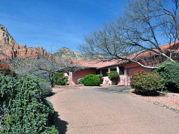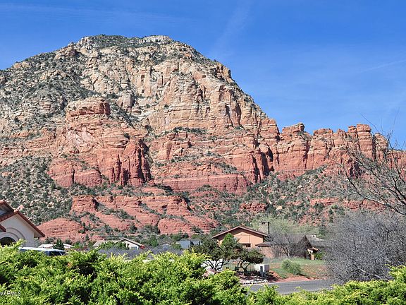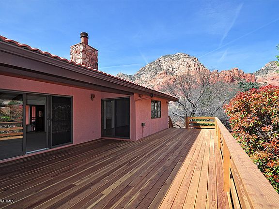 This is a beautiful, immaculate & bright home w/excellent red rock views of Thunder Mountain in W. Sedona, immaculately & lovingly maintained. The welcoming Great Room w/wood beam cathedral ceiling & stone fireplace make this a truly comfortable heart of the home, & the split BR floorplan accentuates the wonderful easy-flowing single level design. The great views really open up from the brand new 48' redwood view deck, & the bright kitchen w/breakfast nook & solid oak cabinets also captures the views of Thunder Mountain. The MBR features solid oak floors & walk-in closet, & there's also a large 3rd bedroom with its own private bath that makes for an ideal large office, too (needs closet for full BR use). Other features incl. Andersen wood case windows & skylights. This is a great home!
