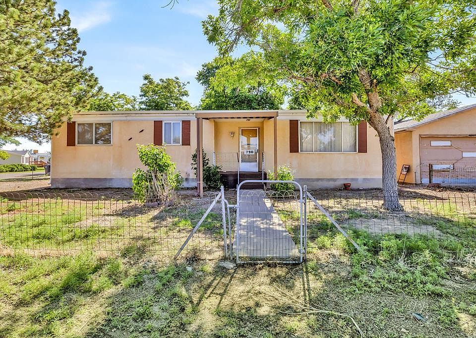 Nice stucco home with 2 car garage and shed with a carport. New roof and garage door just installed. Front yard is covered entrance and yard is completely fenced. Updated flooring in kitchen and bathroom has been updated.