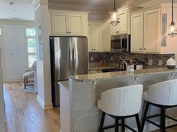 Gorgeous upgraded corner unit townhome at The Sail House in Market Common. This home boasts 2 bedrooms and 2.5 bathrooms with crown molding, solid oak staircase, hand scraped hickory hardwood flooring, storage in attic with flooring, washer/dryer and relaxing fenced in private backyard/patio with remote control sun setter awning! Large open grass area behind home and minutes to shops, restaurants, Crabtree Gym, HGTC, Culinary school and less than a mile to the Atlantic Ocean!! Some furniture to convey with accepted offer!