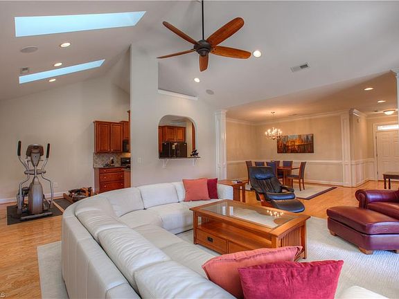 All brick one level end unit town home in a neighborhood convenient to everything! Pristine one owner home with a spacious privacy fenced patio and a 2 car main level garage. Home features a vaulted ceiling in the GR with a Fireplace & gas logs and skylights. Crown molding and hardwood floors throughout the living space. Kitchen has granite counters & all appliance remain. Master suite has a large walk in closet and the MBA has double sinks, garden tub and separate shower. Neighborhood clubhouse and pool!